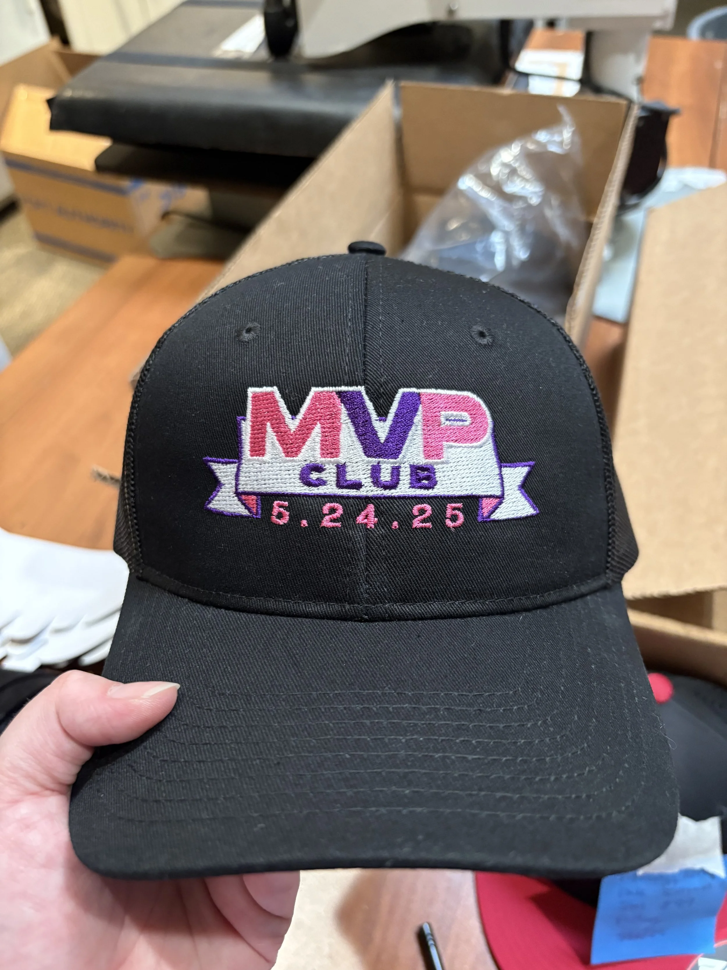 This is a cap for a baseball team that specifically wanted puff embroidered caps. I achieved this effect by placing foam over top the sew at the correct time to give the puff effect.